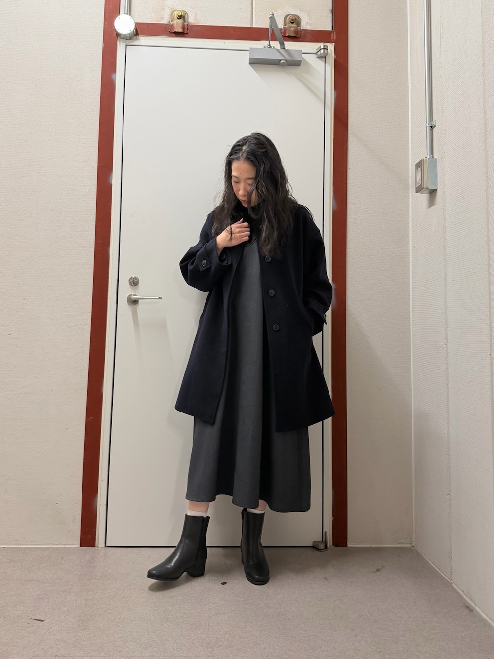pyon(DOORS アミュプラザ鹿児島)のその他アウター「FORK&SPOON ウールノーカラーコート」を使ったコーディネート