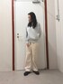 コーデュロイパンツ、IVORYだと抜け感が出るのでおすすめです。Mサイズを着用してます(ぺたんこシューズでも大丈夫です◎)