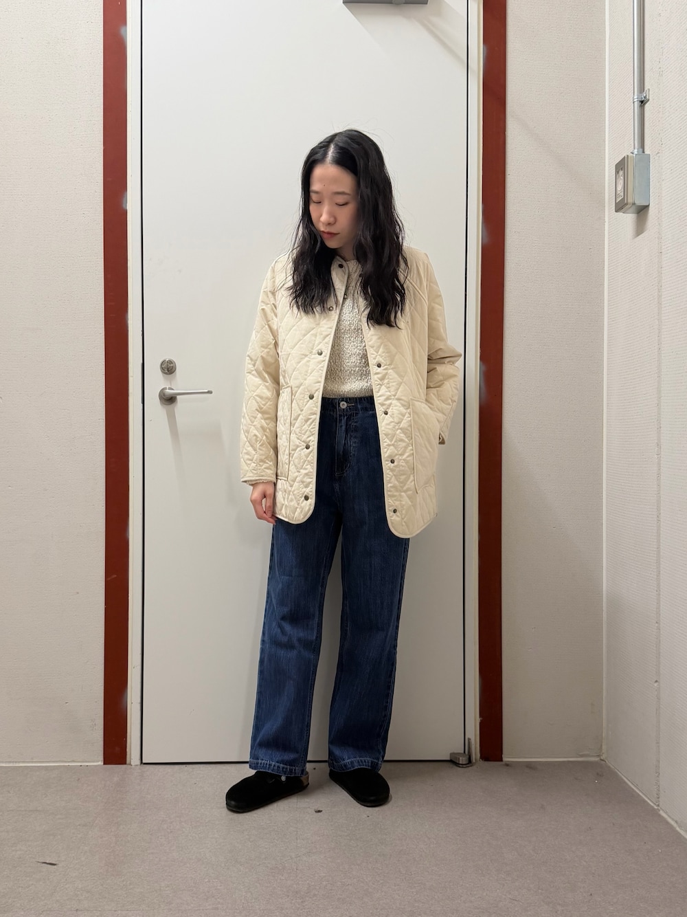 pyon(DOORS アミュプラザ鹿児島)のダウンジャケット/コート「カポックキルトミドルジャケット」を使ったコーディネート