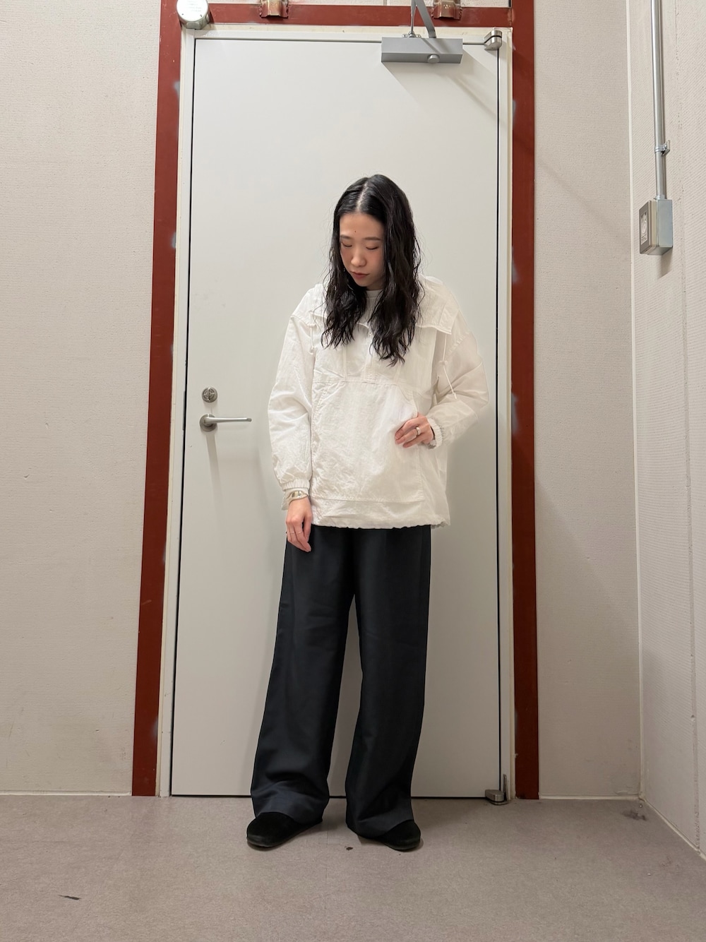 大好きなF&Sの新作が入荷しました! パンツは2のサイズを履いてます。 光沢感のある生地感で、 黒っぽいネイビーです。