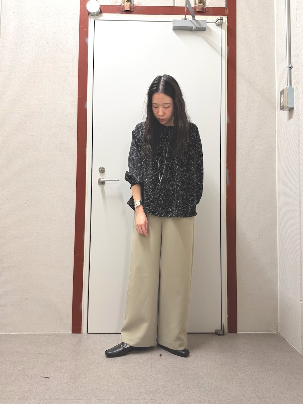 pyon(DOORS アミュプラザ鹿児島)のシャツ/ブラウス「ドットギャザーブラウス」を使ったコーディネート