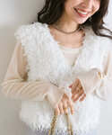 くすみカラーのスカートに合わせてワントーンでコーデ。 ふわふわベストで女子力UP! デートにおすすめのコーディネートです♡ その他コーデはインスタもチェック! @sana_la_bon
