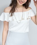 Sana(La boutique BonBon official)のニット/セーター「【スタッフKAZUMI監修カラー】クールタッチUVオフショルラッフルニット」を使ったコーディネート