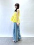 イエローが華やかなトップス! ツイード生地で、しっかりしてるので安心して着れます! デニムと合わせるとカジュアルに決まる!