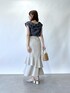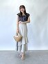 上品なくすみカラーの組み合わせ。 フリルがおとなかわいい部分を出しつつ カラーで抑えるのが鉄則。