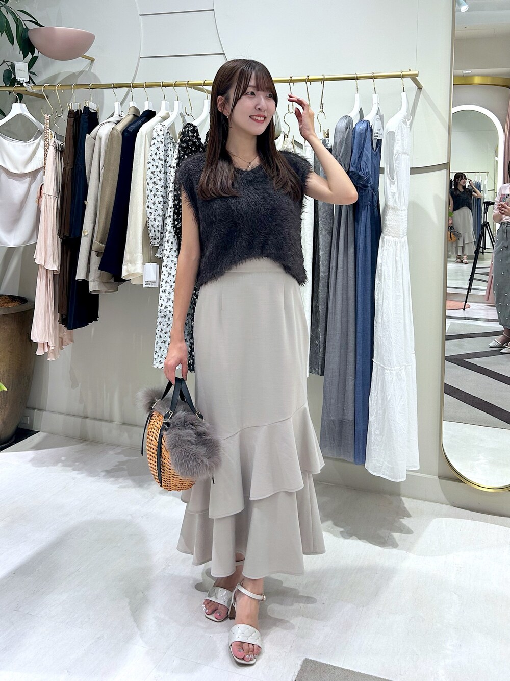 もちっと生地のニットベスト♡ 思わず触りたくなるあざとニットです! スカートは大人っぽいマーメイドシルエットにして、上品なカラー合わせに!