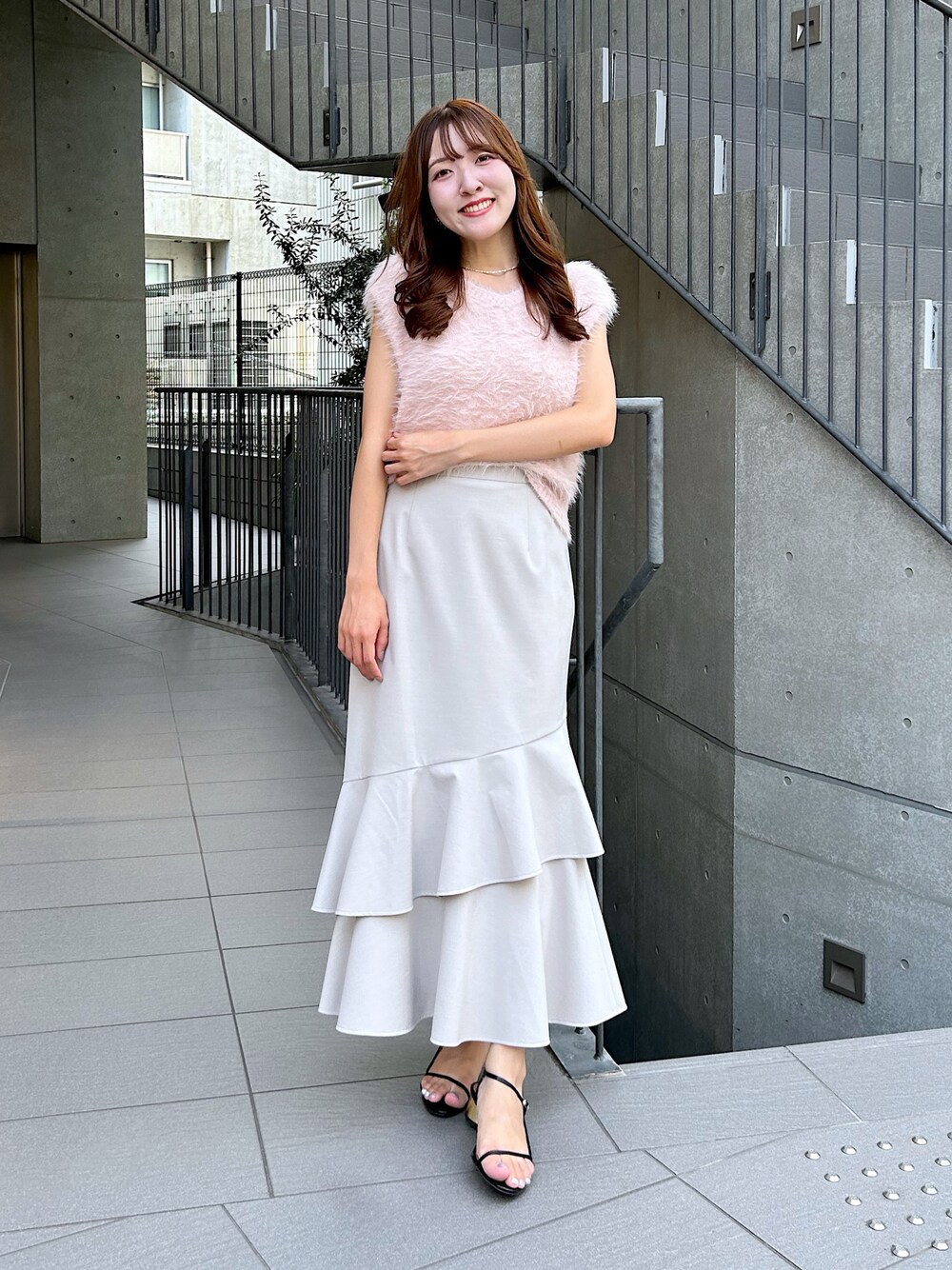ピンクニットで甘めコーデ♥ ボトムはグレージュにして大人っぽさを プラスしてみました! このニット、お気に入り♥