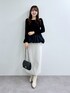 大人っぽトレンドコーデ♥ オトナ女子っぽい着こなしがしたかったので、 トップスはブラックで下は絶妙なグレージュのカラーで落ち着いたカラーのコーデに! 【トップス】 バルーンのペプラムシルエットでトレンド感高めなニット。 上半身は程よく体にそうタイトなシルエットなので、スタイルも綺麗に見えます。 腰周りもカバーしてくれて◎ お仕事にも使えそう! 【スカート】 履いた時の感想が、なにこれ凄い履きやす! だったナロースカート。 ストレッチの効く様な柔らかく弾力のある生地感で、履き心地が抜群です。 スラッと綺麗なナローシルエットなのでボリュームのあるトップスとの相性◎ 後ろのフリルも可愛い♡ 1枚は持っておくと便利かも! skirt♡38size
