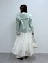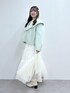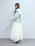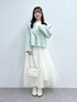 鮮やかなミントカラーで印章的なコーデに! ふんわりなドットスカートと合わせれば、 より女子力UPします。 甘さの中に上品さが入るコーデです!