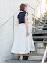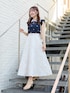 ビジュー付きニットで華やか上品コーデ♡ 【トップス】 クールタッチの生地のニット。 春夏にピッタリな、滑らかでひんやりした着心地です! なによりもこのビジューにときめく。 動くときらきらして可愛いんです♡ 肩周りのフリルもポイント! 首元はフックが1つついてるので、骨格に合わせて首元は開けて着るのもおすすめです! 【スカート】 新作の花柄ジャガードスカート♡ 立体的な花柄のデザインが高級感をUPしてくれます! ふわっとしたフレアなシルエットなので、お姫様のようなシルエットに…♡ 普段のデートはもちろん、特別な日のコーデにも着たいスカートです! skirt♡38size