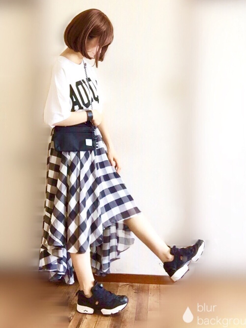 こんにちは! ロゴTにチェックスカート♪お気に入りを詰め込みました❤️ 今日も見ていただきありがとうございます(●´ω`●)💕 Instagram*pyon9494