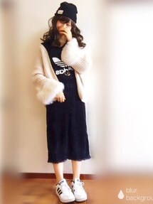 ぴょんのカーディガン/ボレロ「シャギースリーブ畦編みカーディガン ◆」を使ったコーディネート