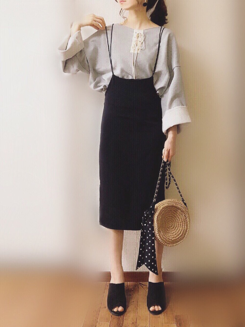 DHOLICさんのスウェット♪抜け感のあるシルエットが可愛いです❤️ バッグに付いてるドットスカーフもDHOLICさんのアイテム♪ 今日も見ていただきありがとうござます🙇 Instagram* pyon9494
