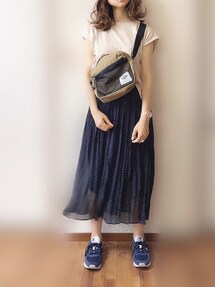 フリークスストアのTシャツ👚 フレンチスリーブにボートネック、そして程よいゆるさが可愛くて合わせやすい✨✨ おススメです♪♪ プリーツスカートは細かいドットになってます! 見ていただきありがとうござます🙇 Instagram* pyon9494