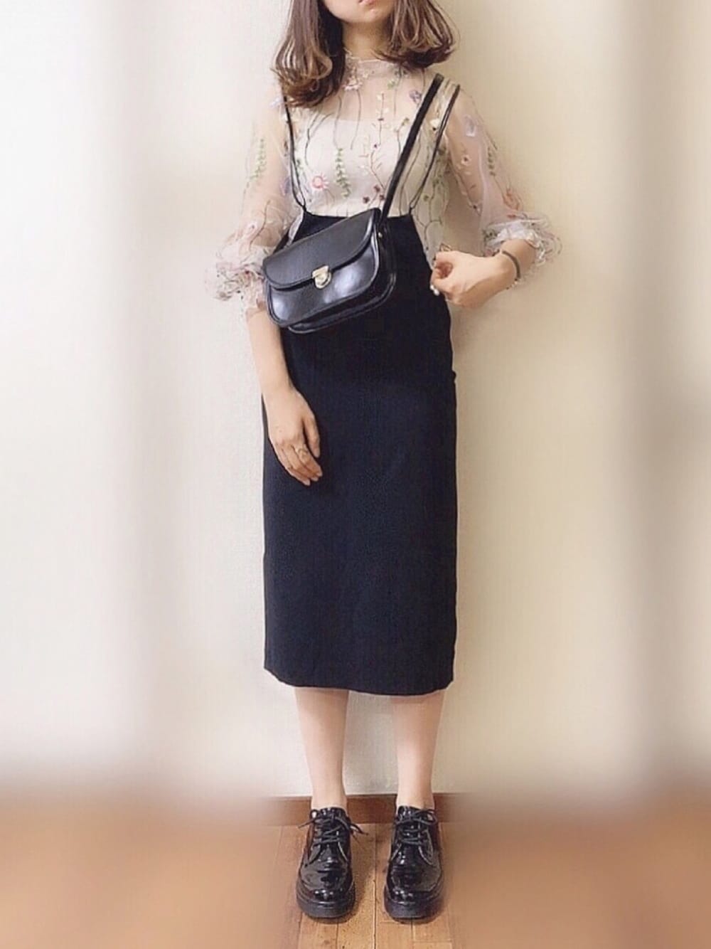 ぴょんのシャツ/ブラウス「花総刺繍のヴェールチュールブラウス」を使ったコーディネート