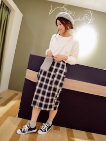 ぴょんのTシャツ/カットソー「ワッフルクルーネックT(7分袖)」を使ったコーディネート