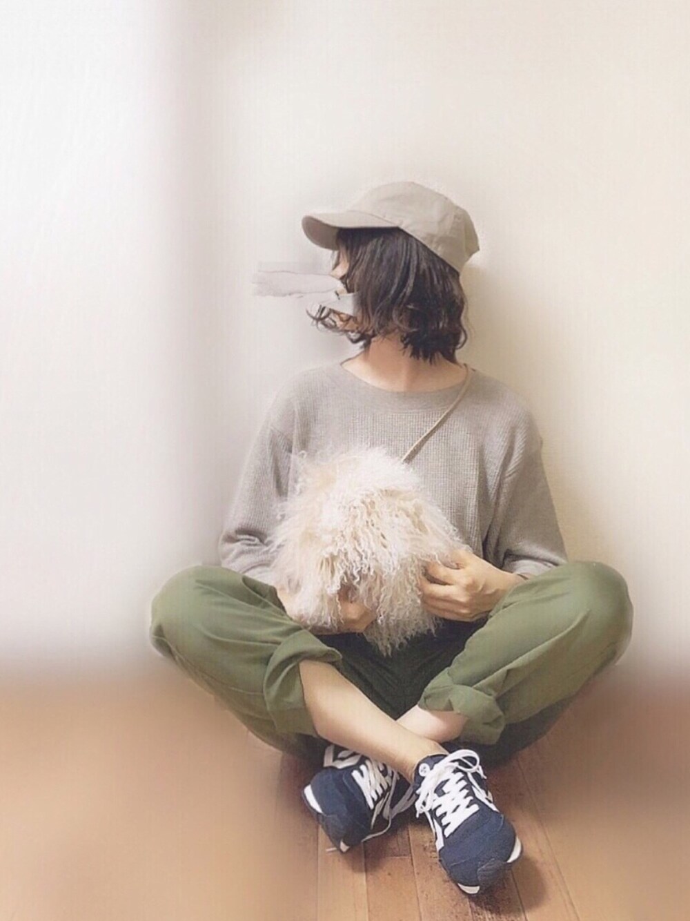 ワッフルクルーネックT、ベージュ。 アースカラーコーデ♪ ファーバッグで秋らしく🌰 見ていただきありがとうございます🙇