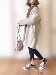 ぴょんのムートンコート「フェイクムートン Vネックコート」を使ったコーディネート