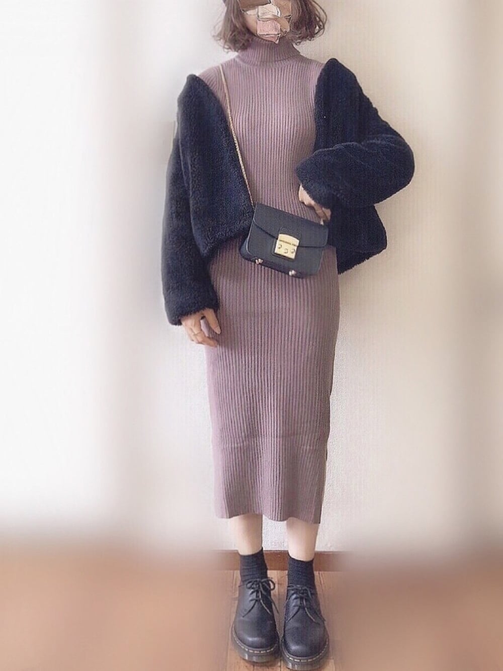 ぴょんのワンピース「タートルニットワンピース」を使ったコーディネート