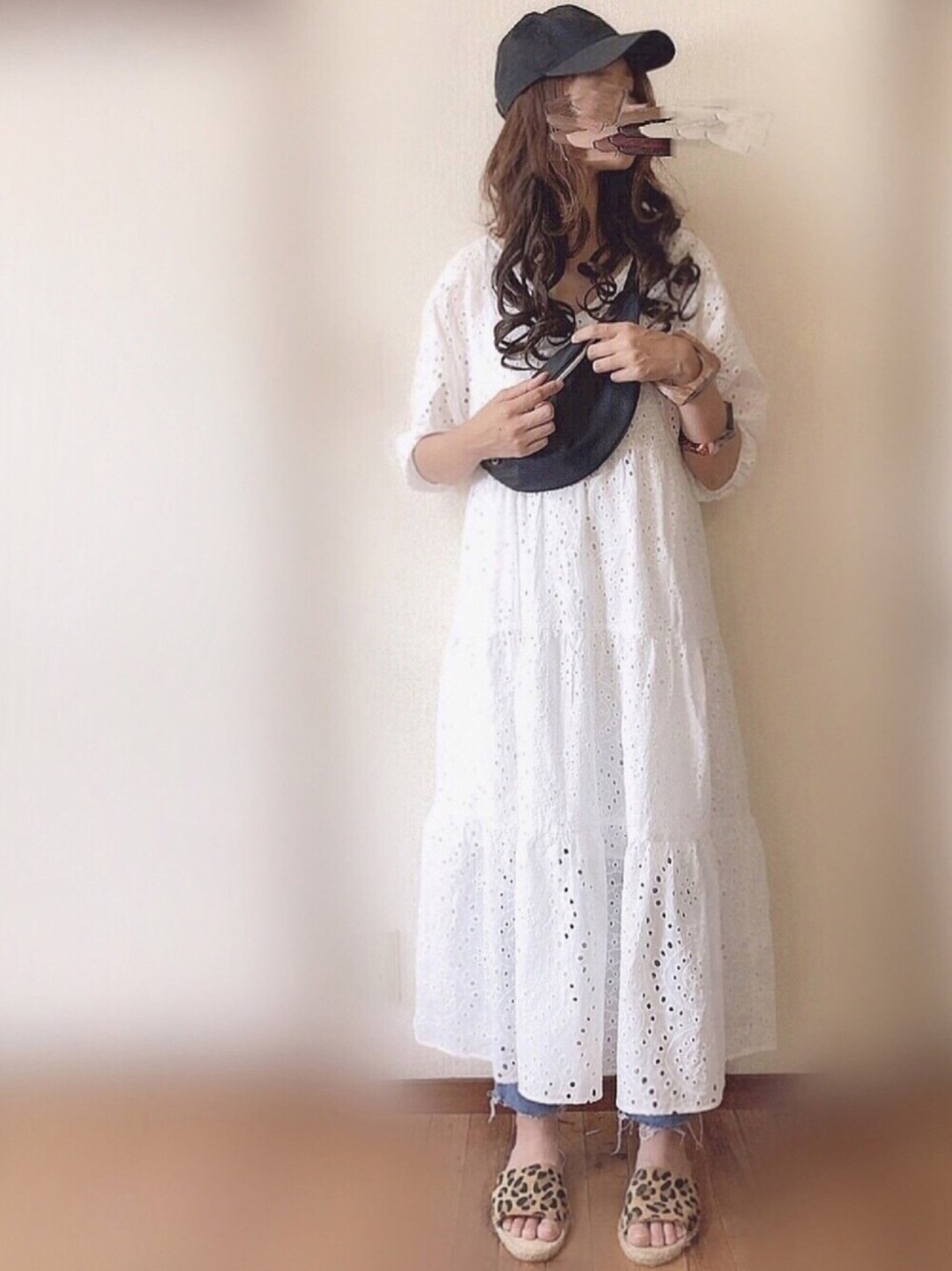 ぴょんのワンピース「【WEB限定】パンチングレースティアードワンピース」を使ったコーディネート