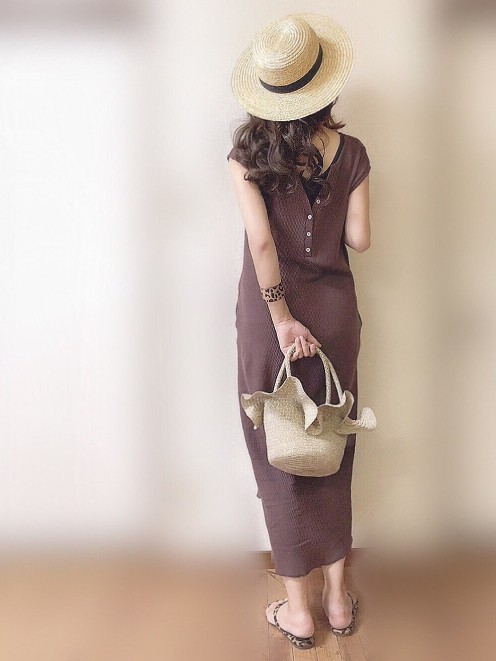 ぴょんのワンピース「AUNT MARIE'S ヘンリーネックハニカムワッフルノースリワンピース」を使ったコーディネート
