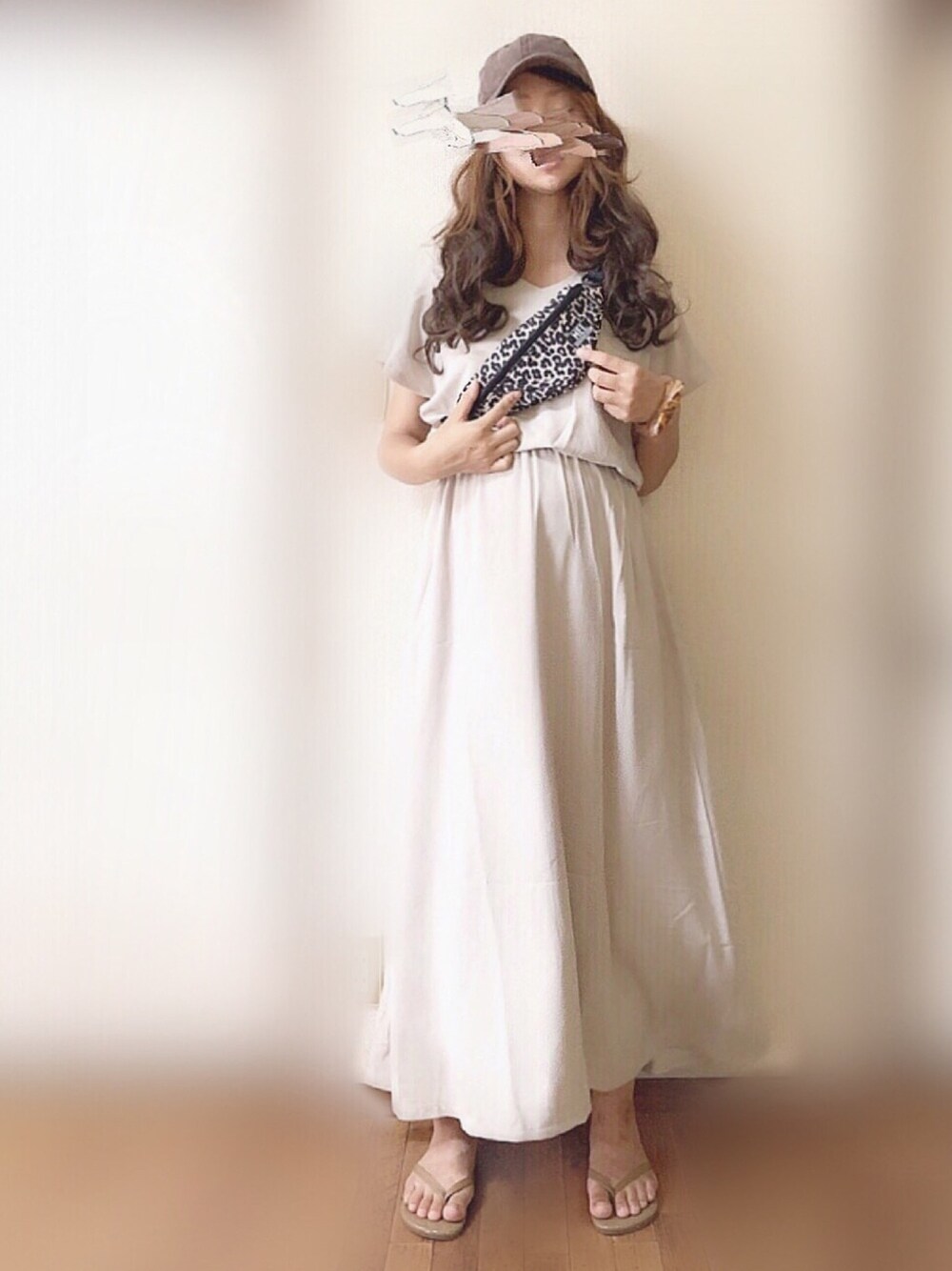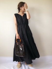 ぴょんのワンピース「フレンチスリーブVネックマキシワンピース」を使ったコーディネート