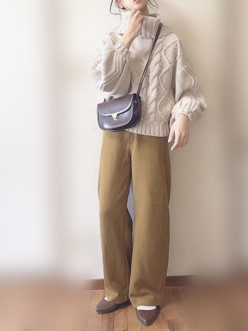 ぴょんのニット/セーター「【LA BELLE ETUDE】ボリュームケイブル タートルニット」を使ったコーディネート