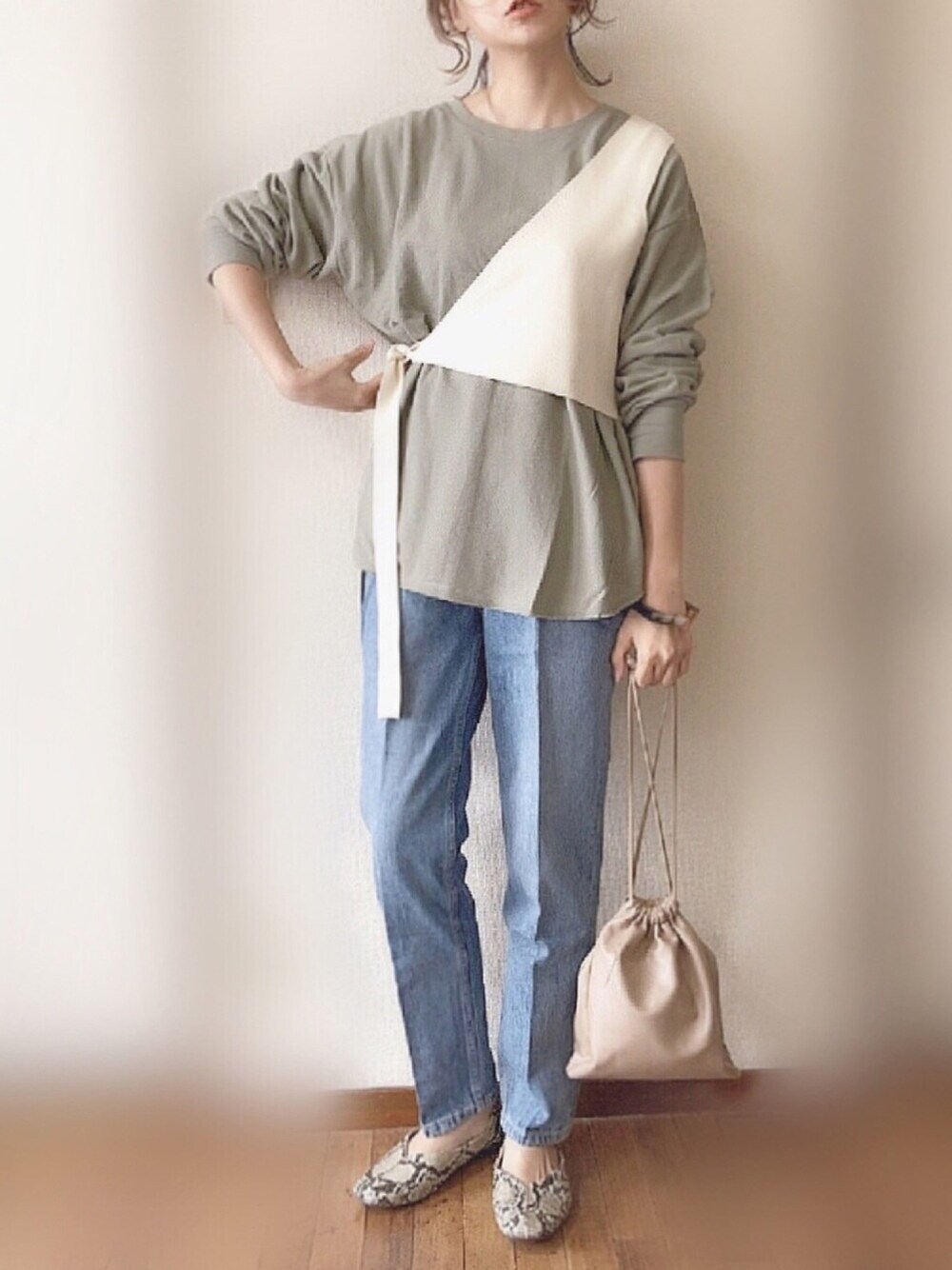 ぴょんのTシャツ/カットソー「バックスリットウエストマークカットソートップス」を使ったコーディネート