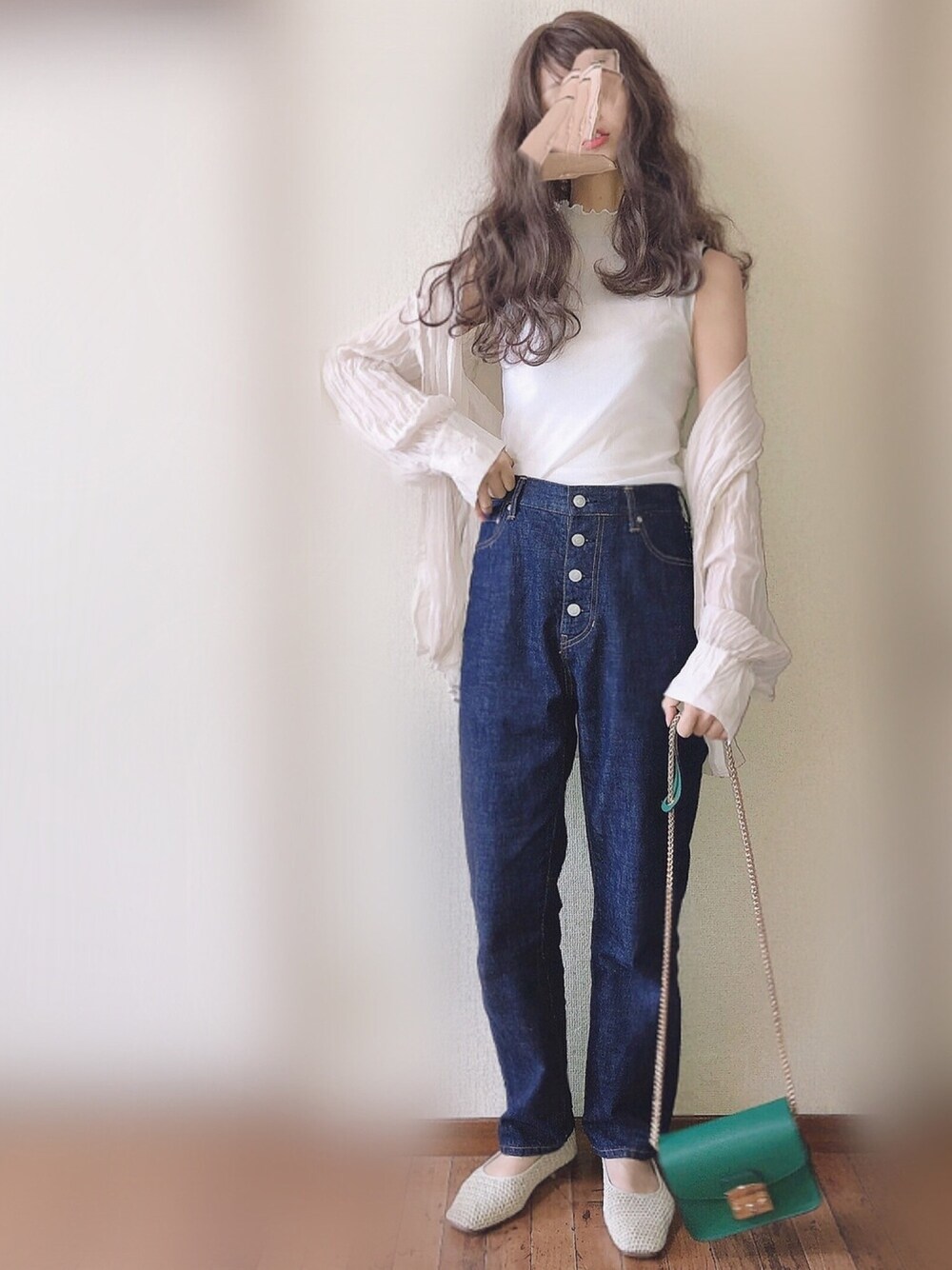 ぴょんのシャツ/ブラウス「クリンクルバンドカラーシャツ/ AUNT MARIE'S」を使ったコーディネート