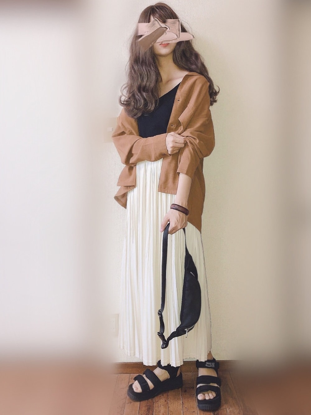 ぴょんのスカート「WEB限定 マキシ丈ロング 無地 プリーツスカート(ウエストゴム)」を使ったコーディネート