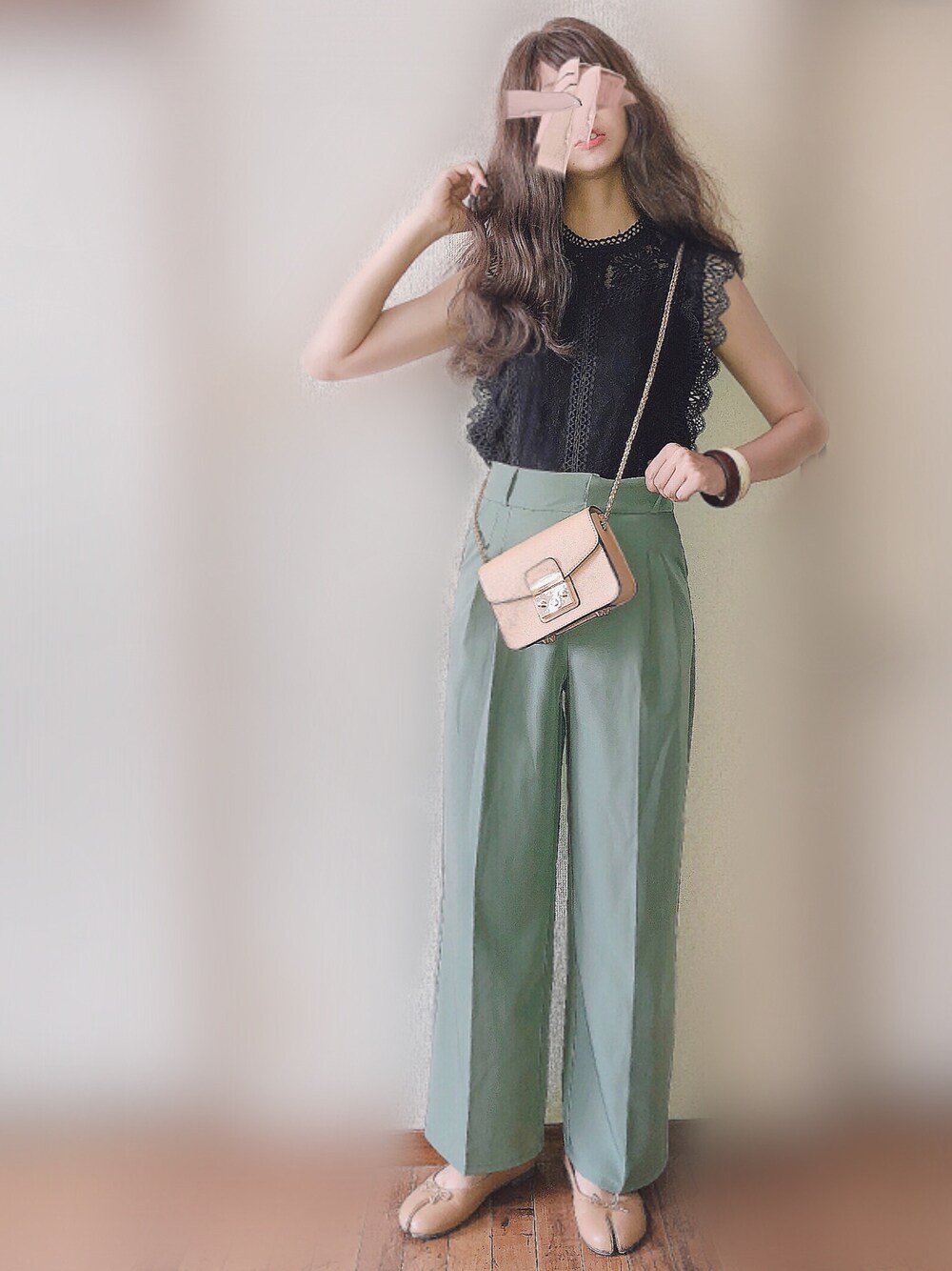 ぴょんのシャツ/ブラウス「レース切替ノースリブラウス」を使ったコーディネート