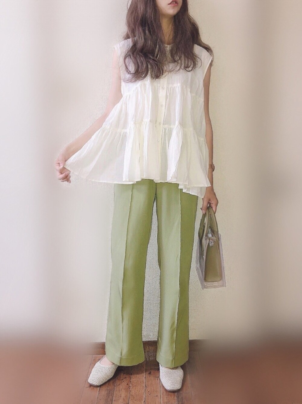 ぴょんのシャツ/ブラウス「【ZOZO限定】フレンチボリュームティアードブラウス」を使ったコーディネート