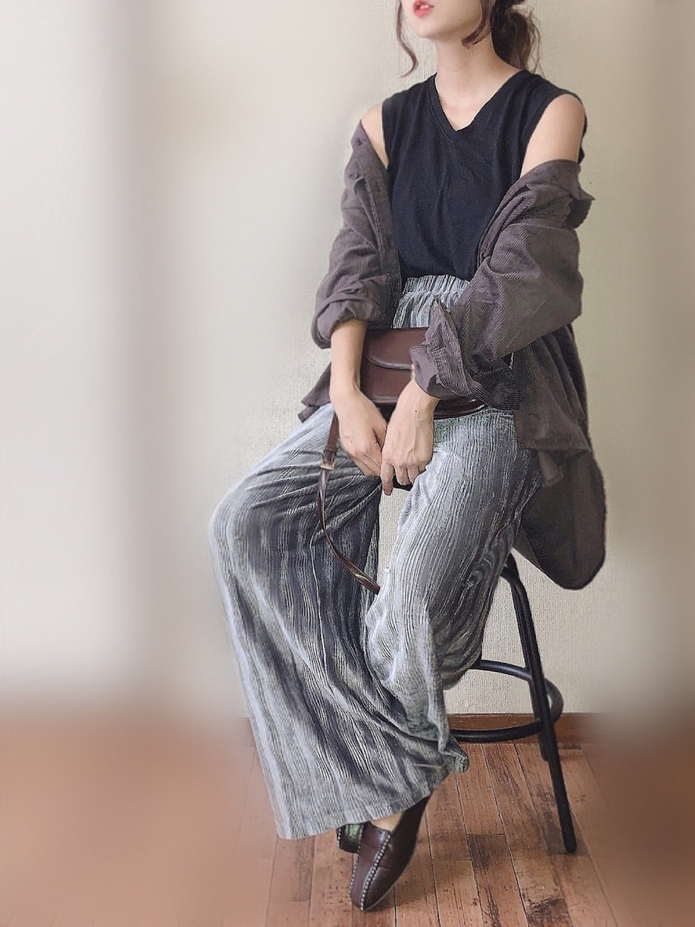 ぴょんのその他パンツ「ウェーブ柄 ベロアワイドパンツ」を使ったコーディネート
