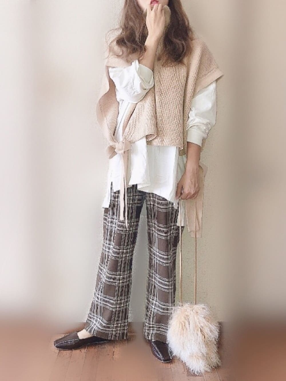 ぴょんのベスト「Libra サイドリボンニットベスト」を使ったコーディネート