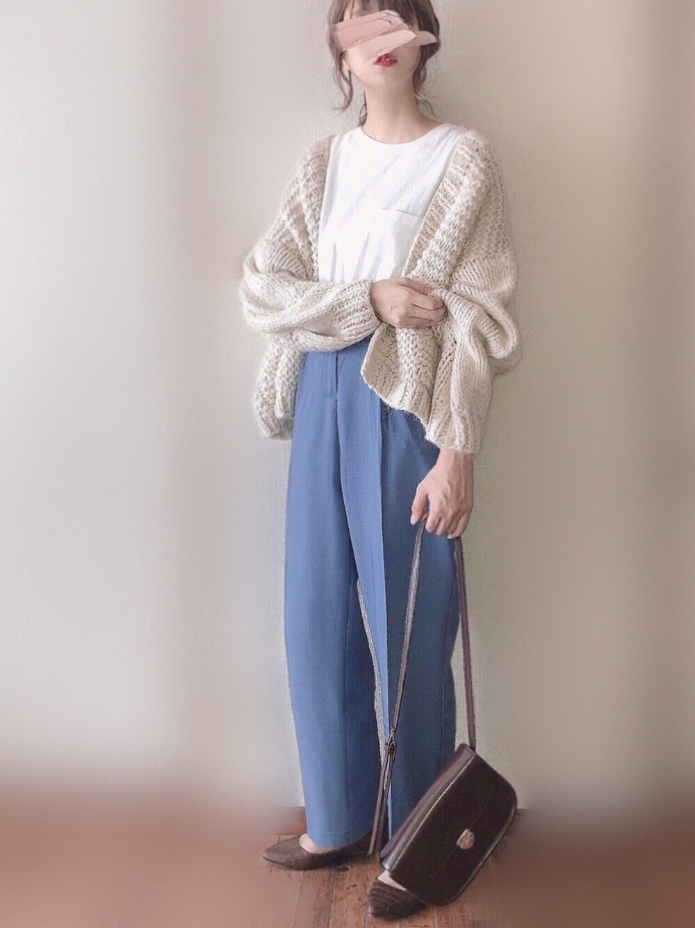 くすみブルー💙 小物をブラウンにすると秋らしくなります🍂 見ていただきありがとうございます🙇♀️ Instagram*pyon9494