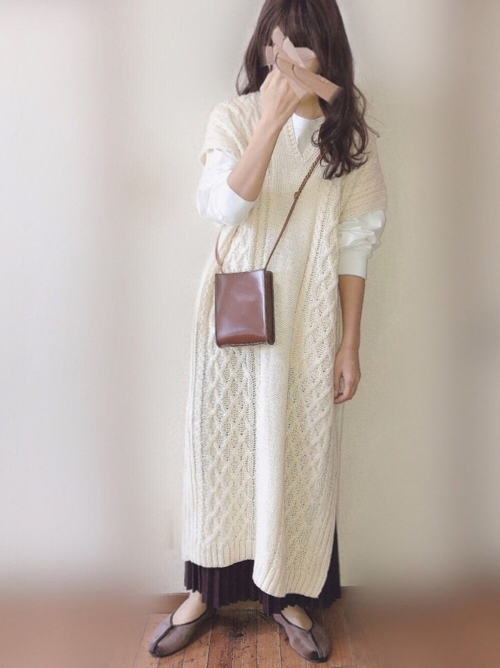 ぴょんのワンピース「ケーブルビックスリーブニットベストワンピース」を使ったコーディネート