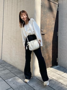 ぴょんのシャツ/ブラウス「【大人ナチュ】サテンパイピングブラウス」を使ったコーディネート