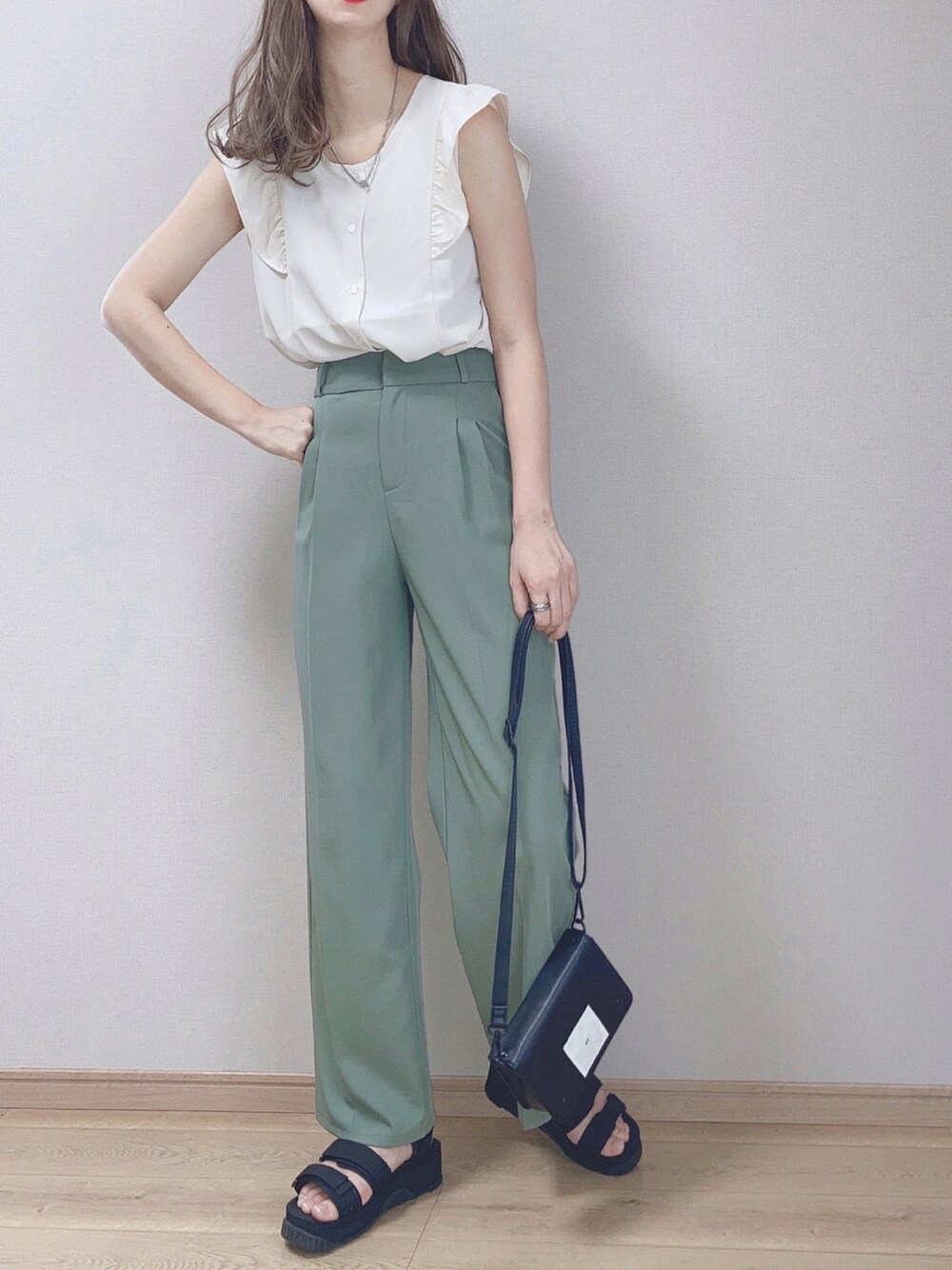 PURILのフリルノースリーブブラウスを着用してます。 サラッとした生地に肩のフリルが可愛いです💕 前後2way仕様なので日によって雰囲気も変えられるので嬉しい😆 スッキリと着られるのでお気に入りです! 見ていただきありがとうございます🙇♀️