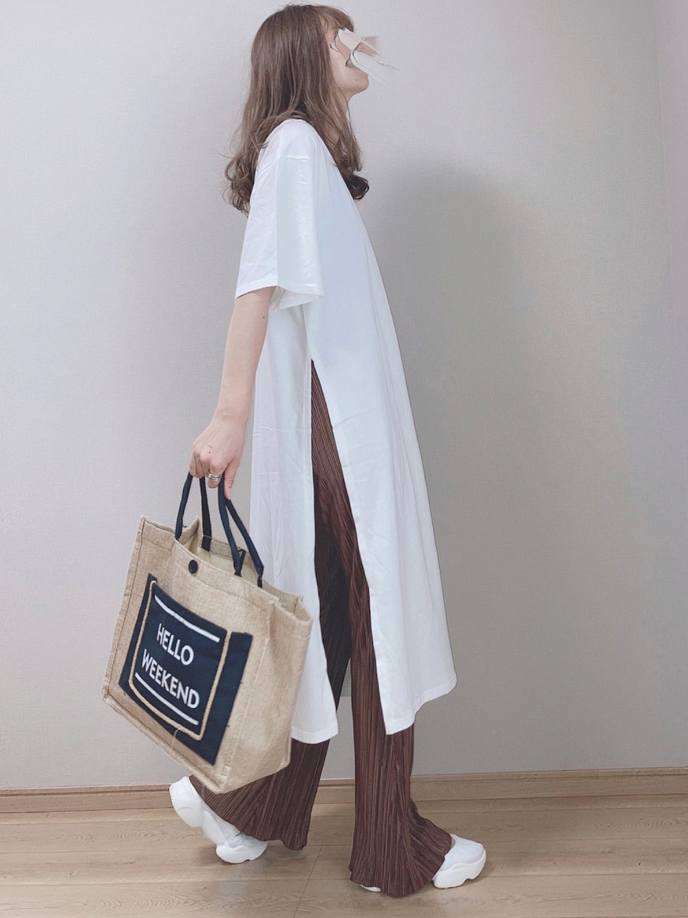 ぴょんのワンピース「フロントポケット付きTシャツワンピース」を使ったコーディネート