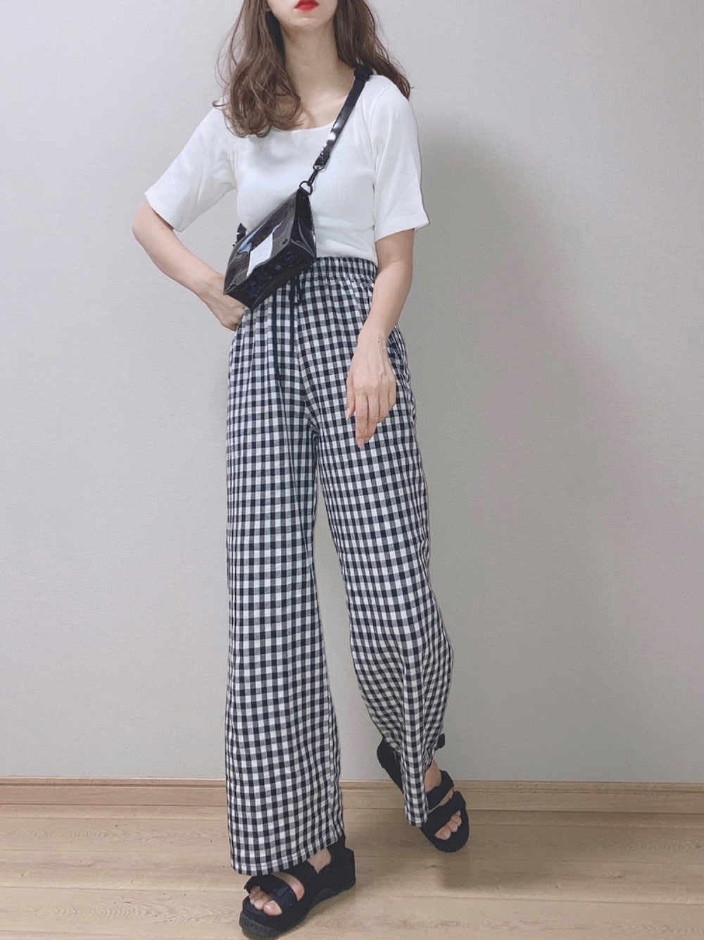 ぴょんのその他パンツ「Ginghamcheck wide pants / ギンガムチェックワイドパンツ(nana select)」を使ったコーディネート