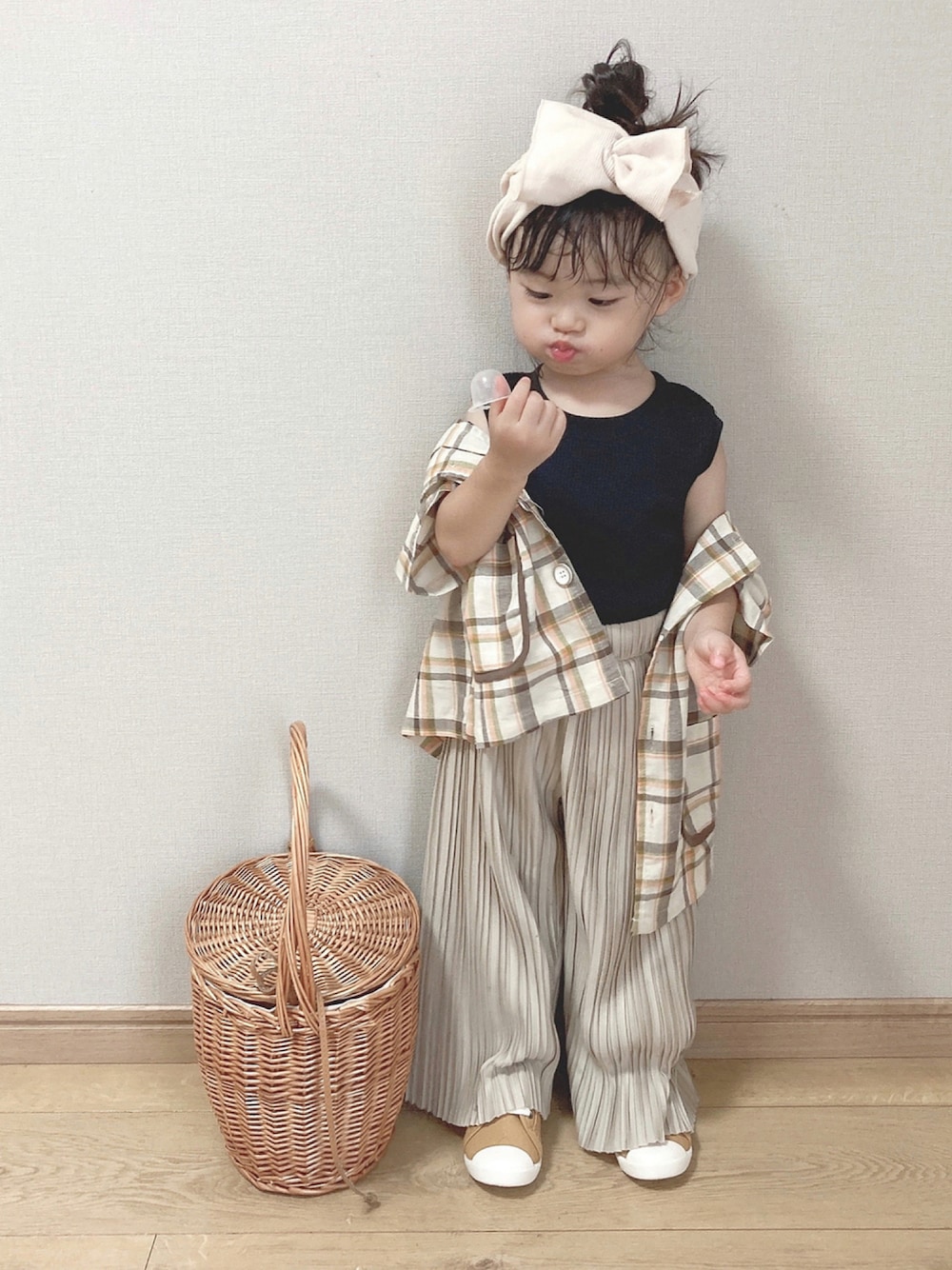 身長約90㎝、2歳0ヶ月のもものすけ🍑コーデ。 これいつの!?ってくらい前に撮った物なのですが😂8月最後なので、出しちゃいます。 プリーツパンツはpairmanonのアイテム。 サイズ90だけどちょい長め💦 なんとなくpairmanonさんのサイズ90って大きめの作りじゃないですか?特にボトムス! で特にワンピースとかサイズが大きくなるにつれて短めの作りになってる様なきがします。 私の思い違いだったらごめんなさい😂 インナーとスニーカーはbirthdayアイテムです。 見ていただきありがとうございます🙏 Instagram*pyon9494