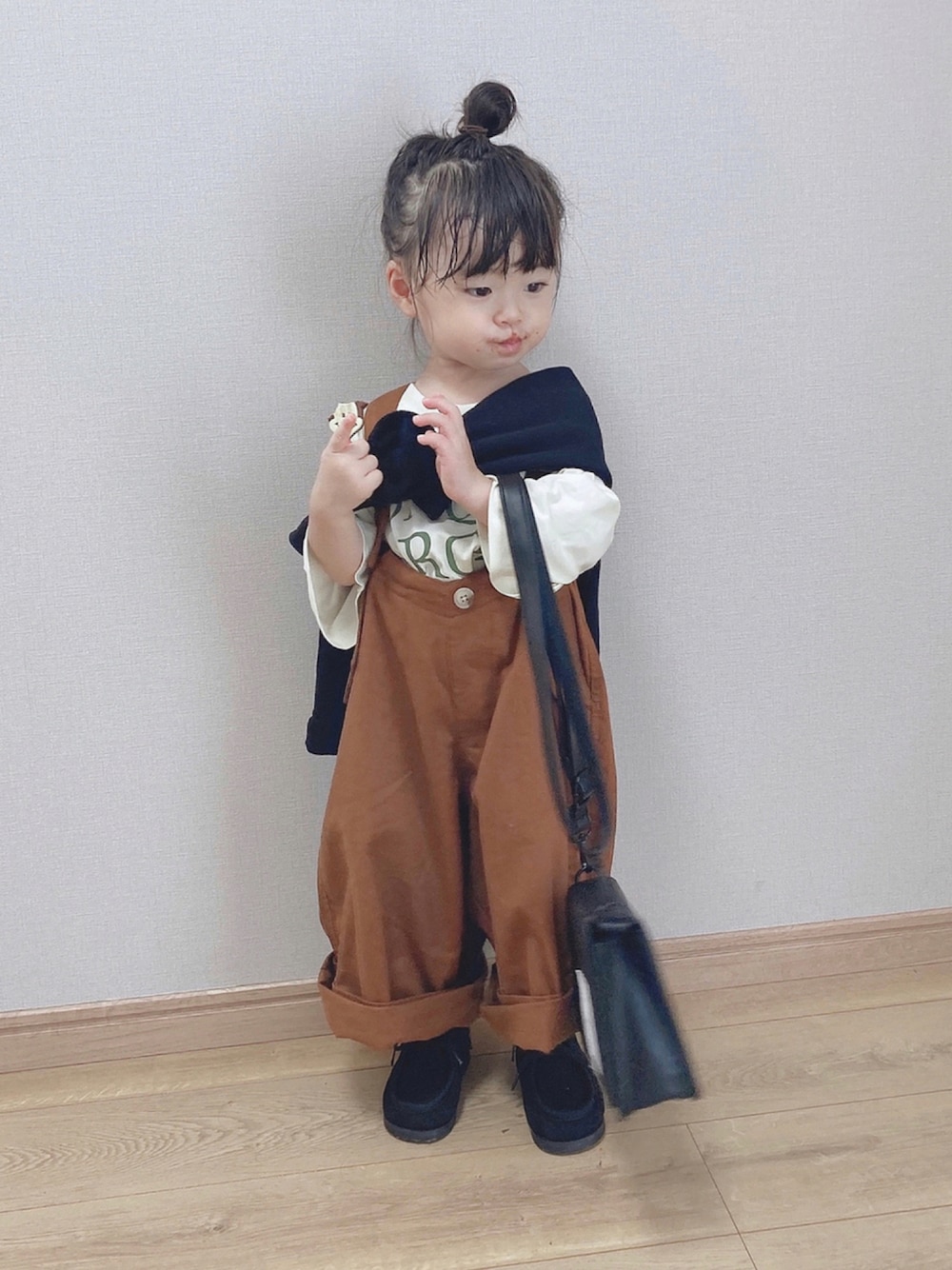 身長約90㎝、2歳0ヶ月のもものすけ🍑コーデです。 肩がけカーディガンって絶対外れませんか?😂 もって10分。 酷いと10秒😂 2歳児なんてこんなもんよね👧 見ていただきありがとうございます🙏 Instagram*pyon9494