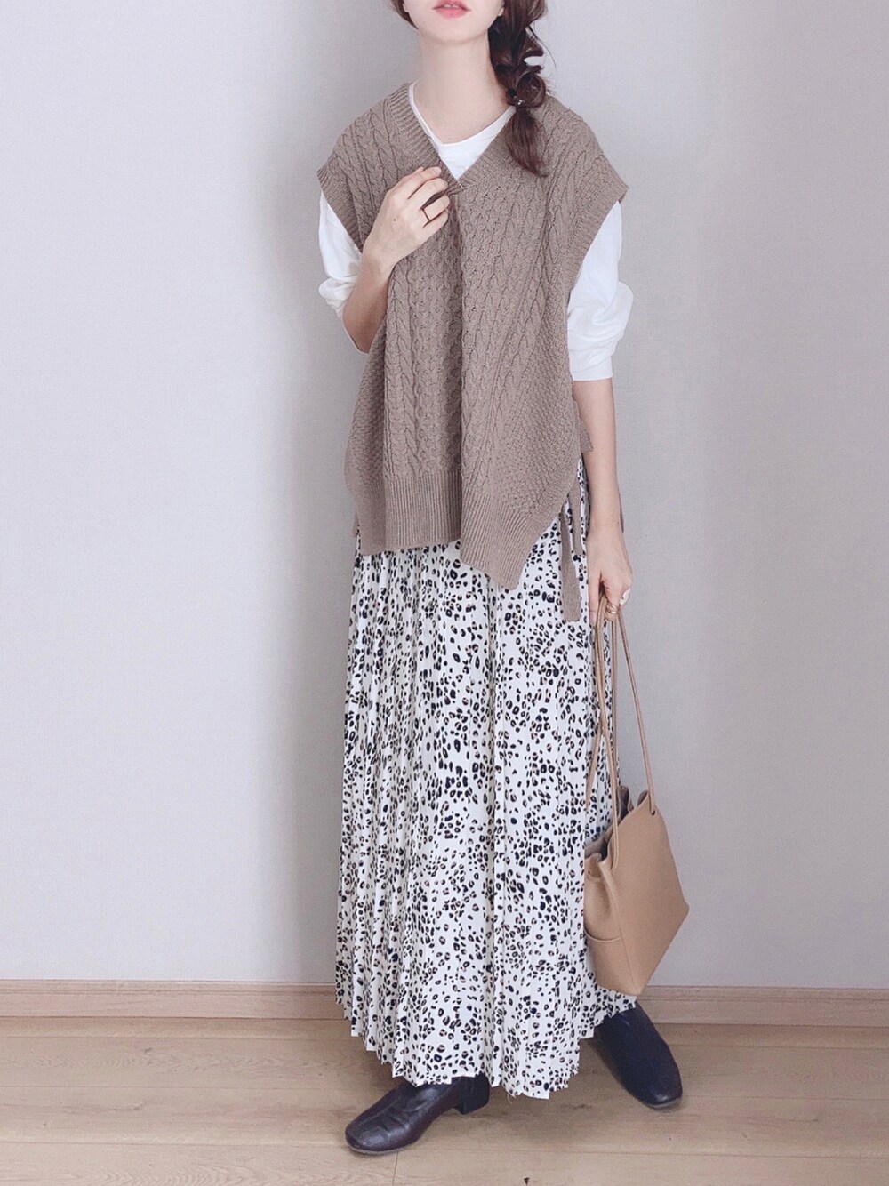 ぴょんのベスト「ケーブルニットベスト」を使ったコーディネート