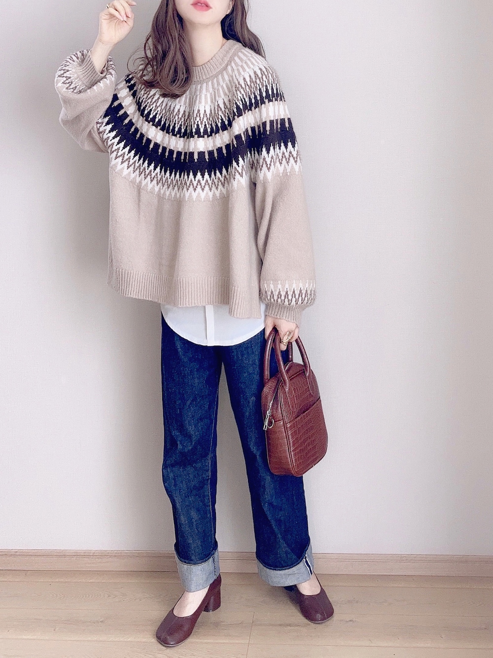 ぴょんのニット/セーター「CORNERS by KR ノルディックニット」を使ったコーディネート