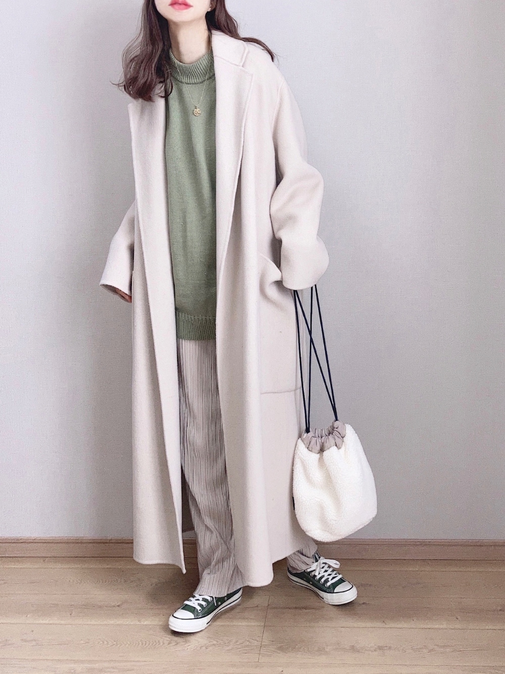 ぴょんのピーコート「ウールオーバーコート」を使ったコーディネート