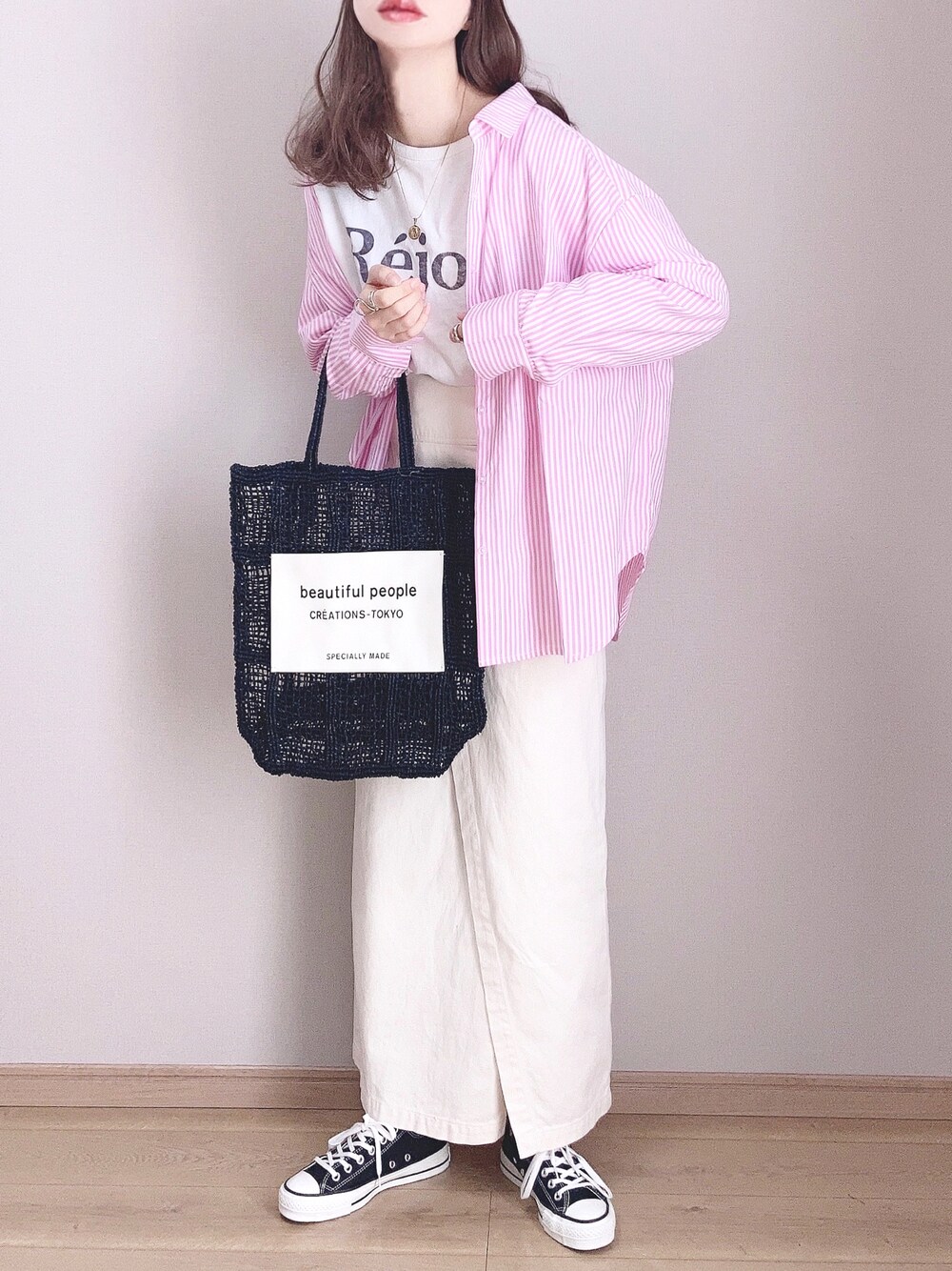 ぴょんのシャツ/ブラウス「オーバーサイズレギュラーカラーシャツ/ストライプシャツ」を使ったコーディネート