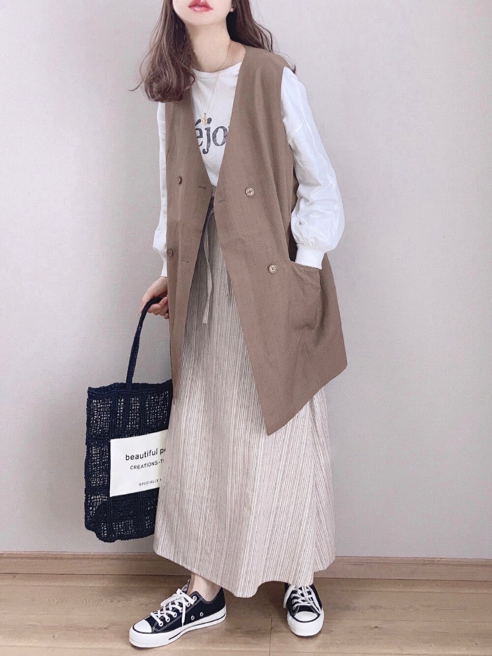 ぴょんのスカート「ストライプフレアスカート」を使ったコーディネート