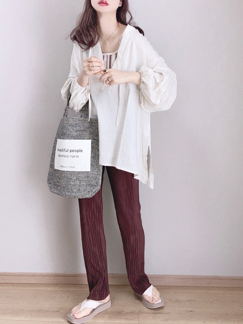 ぴょんのシャツ/ブラウス「ボリュームスリーブリネンスキッパーシャツ」を使ったコーディネート