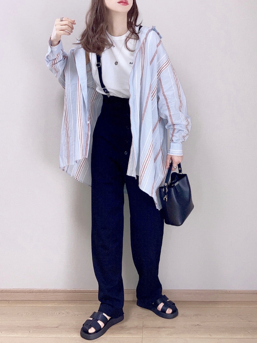 ぴょんのシャツ/ブラウス「マルチストライプBIGBIGシャツ」を使ったコーディネート