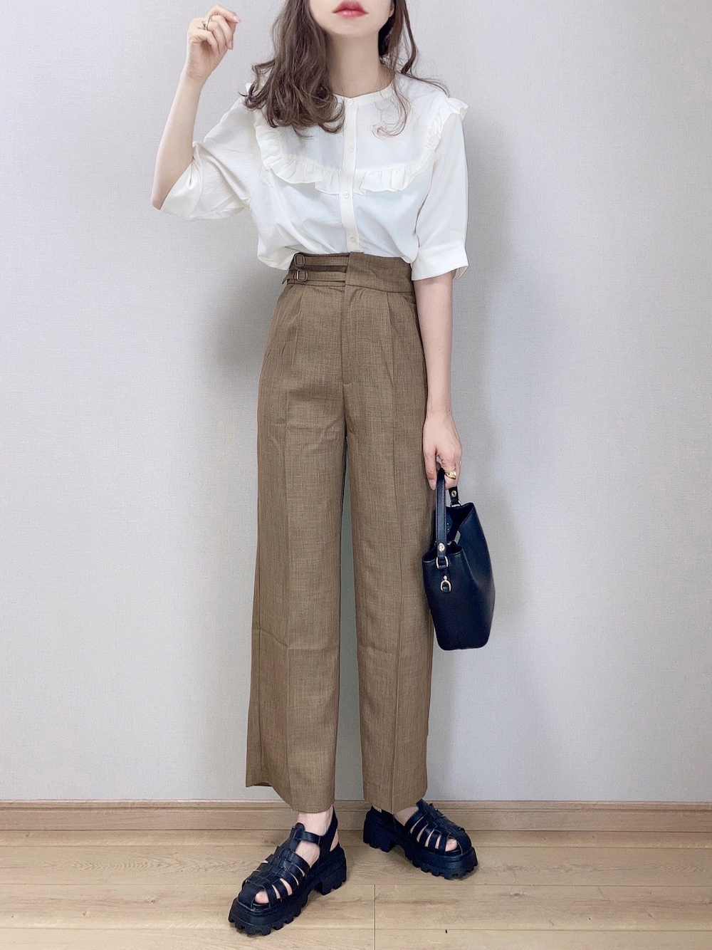ぴょんのシャツ/ブラウス「ヨークフリルワッシャーブラウス」を使ったコーディネート